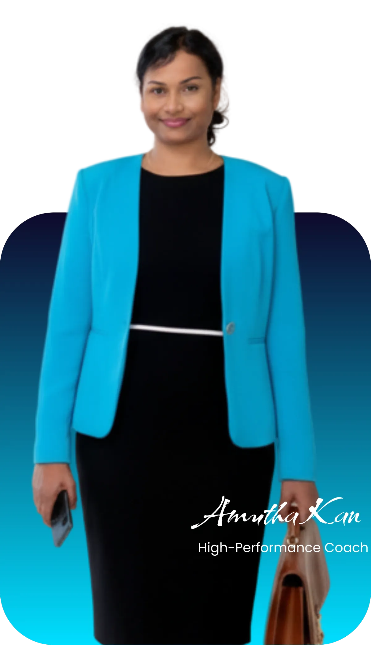 With a background in healthcare and neuroscience based coaching, Amutha supports individuals who seek sustainable healing, emotional strength, and success rooted in leadership, spirituality, and biology.